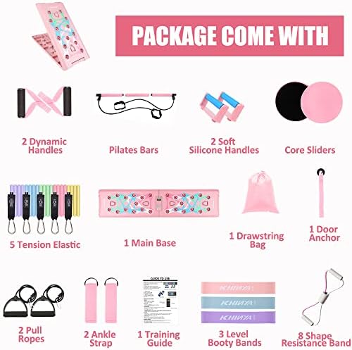 Strength Training and Body Shaping: The push up board has 4 color-coded panels for different muscles training including chest, shoulder, triceps, biceps and back while engaging your core. Pilates bar helps you exercise your arms, chest, abs, glutes, legs and butt. Resistance bands can be used to train lower body muscles. Provides detailed instructions and training schedules to make your workouts more efficient.