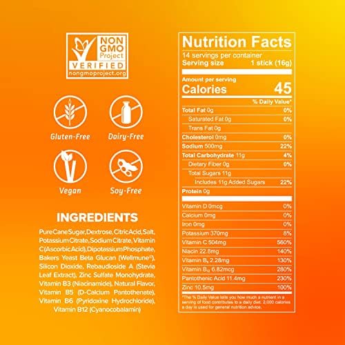 Non-GMO and made with premium ingredients, Hydration Multiplier+ Immune Support Powder Drink Mix contains 5x the daily value of Vitamin C. It’s also gluten-free, soy-free, and dairy-free.