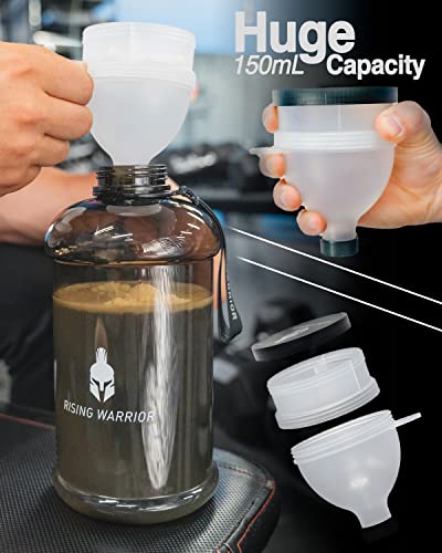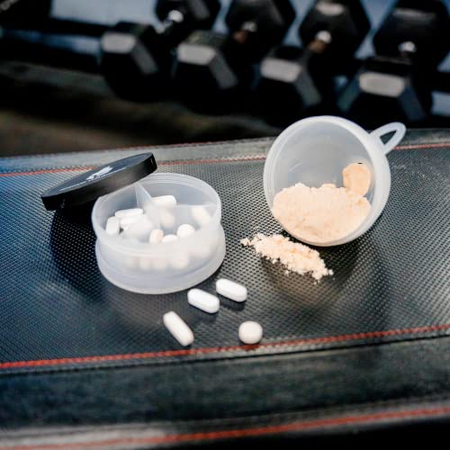💪CONVENIENT- Great funnel for storing gym powders and vitamins all in one convenient spot. The removable pill compartment makes this funnel detachable and easier to carry everything. Including fish oils, vitamins, creatine pills and MORE!