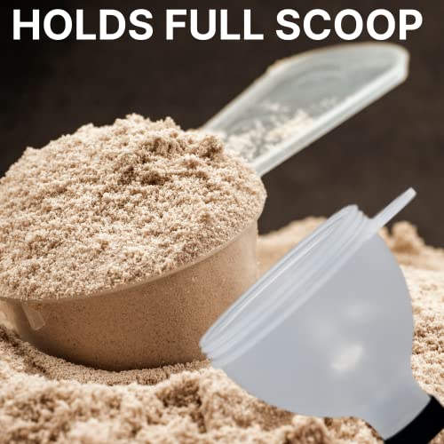💪HUGE CAPACITY- This large 150ml gym funnel has the capacity to hold 5-6 scoops of your favorite pre-workout and protein powder. Great for both pre and post workout recovery