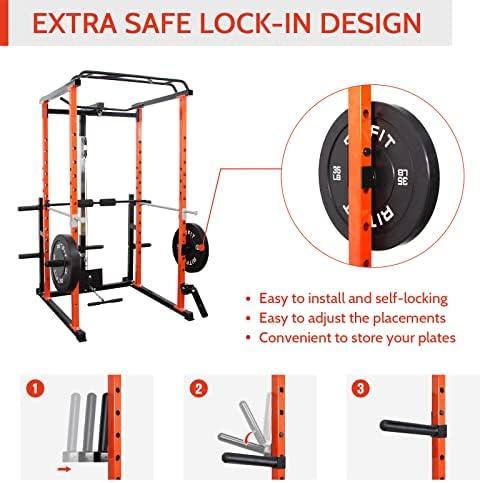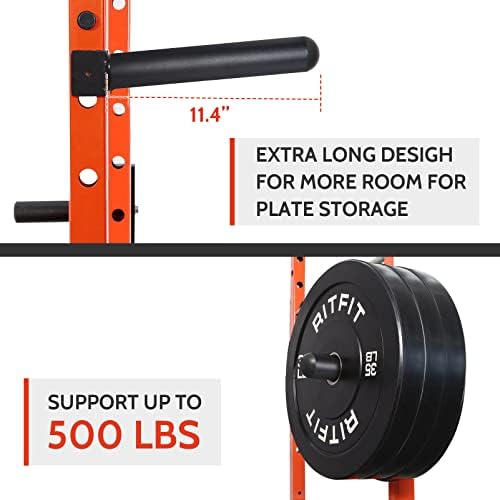 【EASY TO USE】With a fast safety lock designed, it could be easily installed on the rack with no hardware necessary and can be adjusted to any position you like in just a second! It offers convenience for you to grab or return the plates when you are doing workouts.