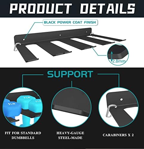 SPECIFICATIONS After many types of research and testing with customers’ houses and gym users. We finally produced this rack with a perfect size for your home gym. 15.9″ Length x 8.74″ Width x 1.6″ Height; Mounting hardware and 2 carabiners are included. Each prong is strong enough to hold up 40 pounds at the wall side of the rack. Installation of this metal organizer rack is easy to install and can be done by everyone in just a few minutes. We poured our passion into the best products for you!