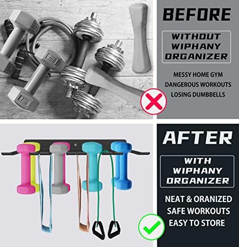 SPACE-SAVER Always feel bad about messy workout places or hurting yourself by those heavy barbells on the floor? WIPHANY rack is such a space helper for you to solve all the troubles and have safe and clean workout places. The metal 8 prongs workout rack allows you to store extra accessories by taking care of almost every kind of hangable gym gear without worrying about a messy one. Home Gym has never been so clean and tidy as ever, just buy it.”