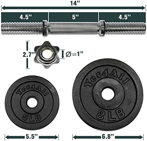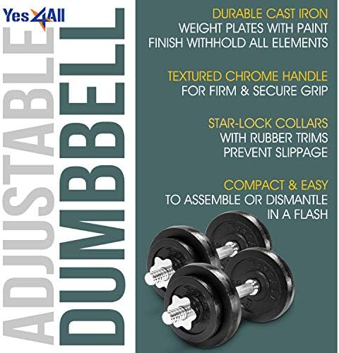 Yes4All Adjustable Cast Iron Dumbbell Sets 2-in-1 40/50/52.5/60/105 to 200LBS with Alloy Steel Connector Option for Strength Training, Full Body Workout, and Muscle Building Men Women